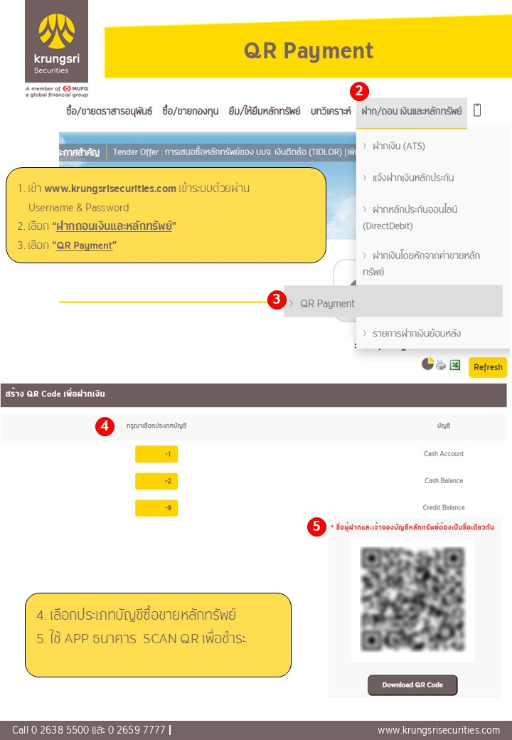 4. QR Payment การฝากเงินเข้าบัญชีซื้อขายหลักทรัพย์