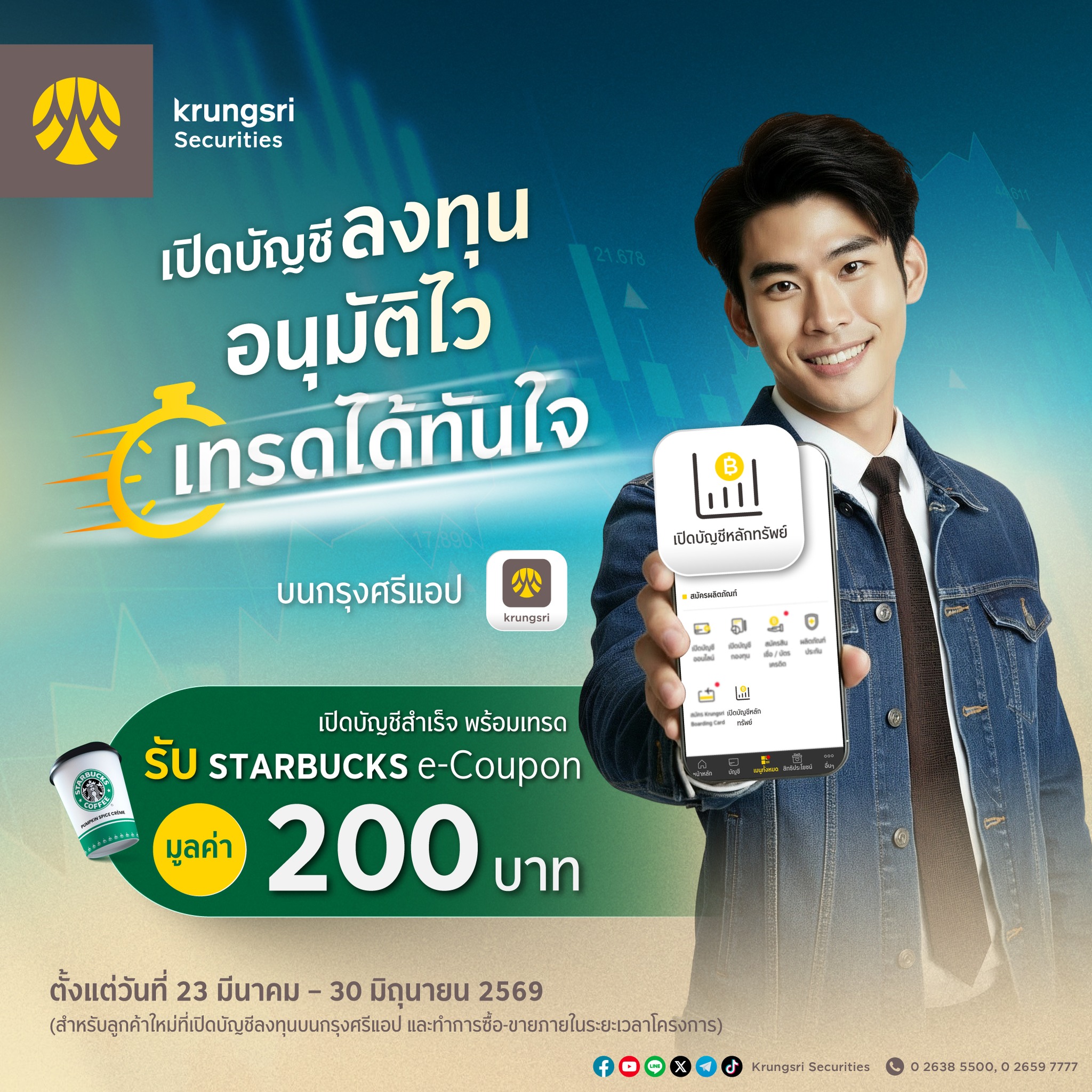 โปรโมชัน เปิดบัญชีหลักทรัพย์ ผ่านช่องทาง krungsri app