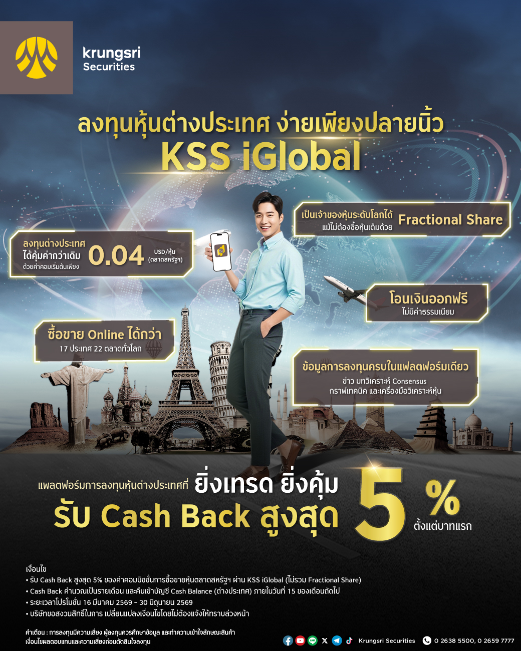 KSS iGlobal: ยิ่งเทรด ยิ่งคุ้ม รับ Cash Back สูงสุด 5%