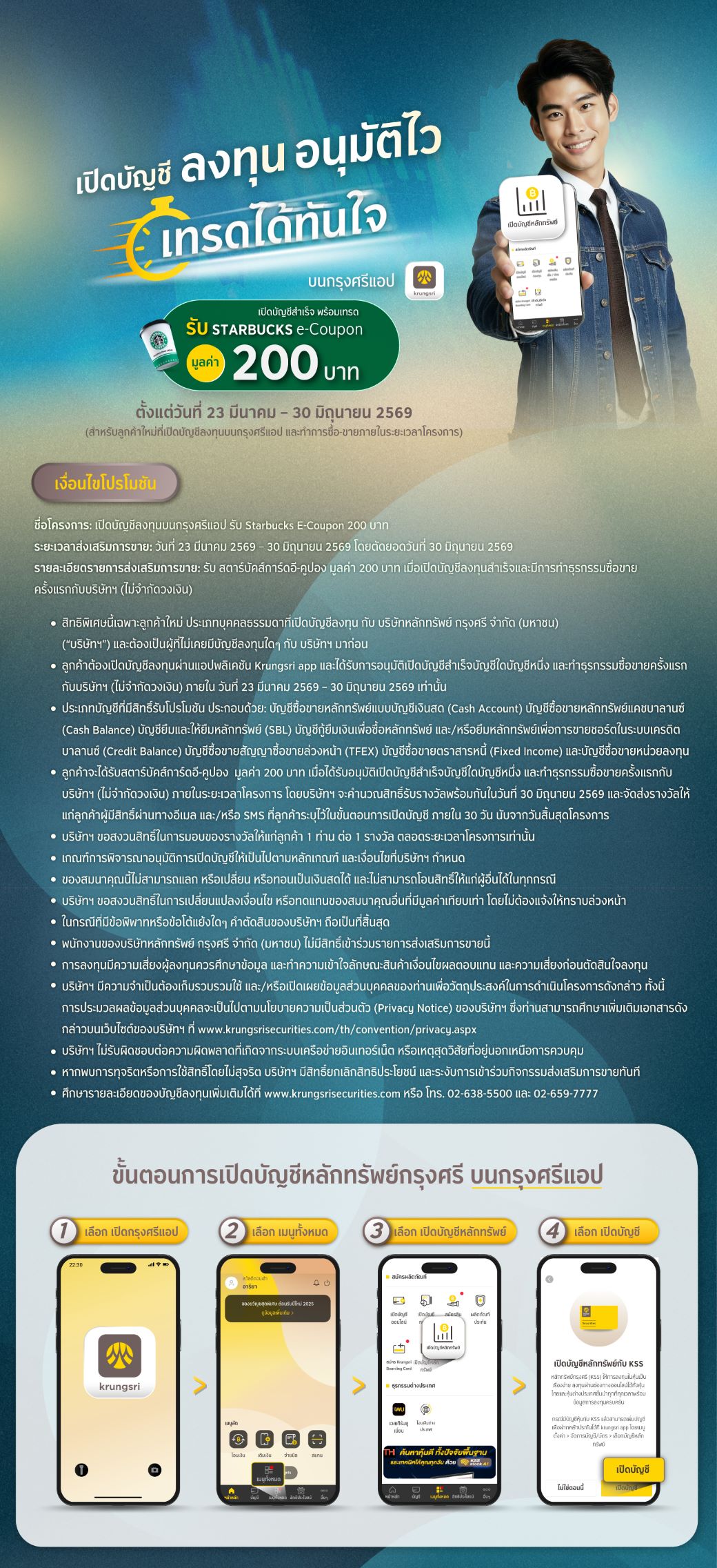 โปรโมชัน เปิดบัญชีหลักทรัพย์ ผ่านช่องทาง krungsri app